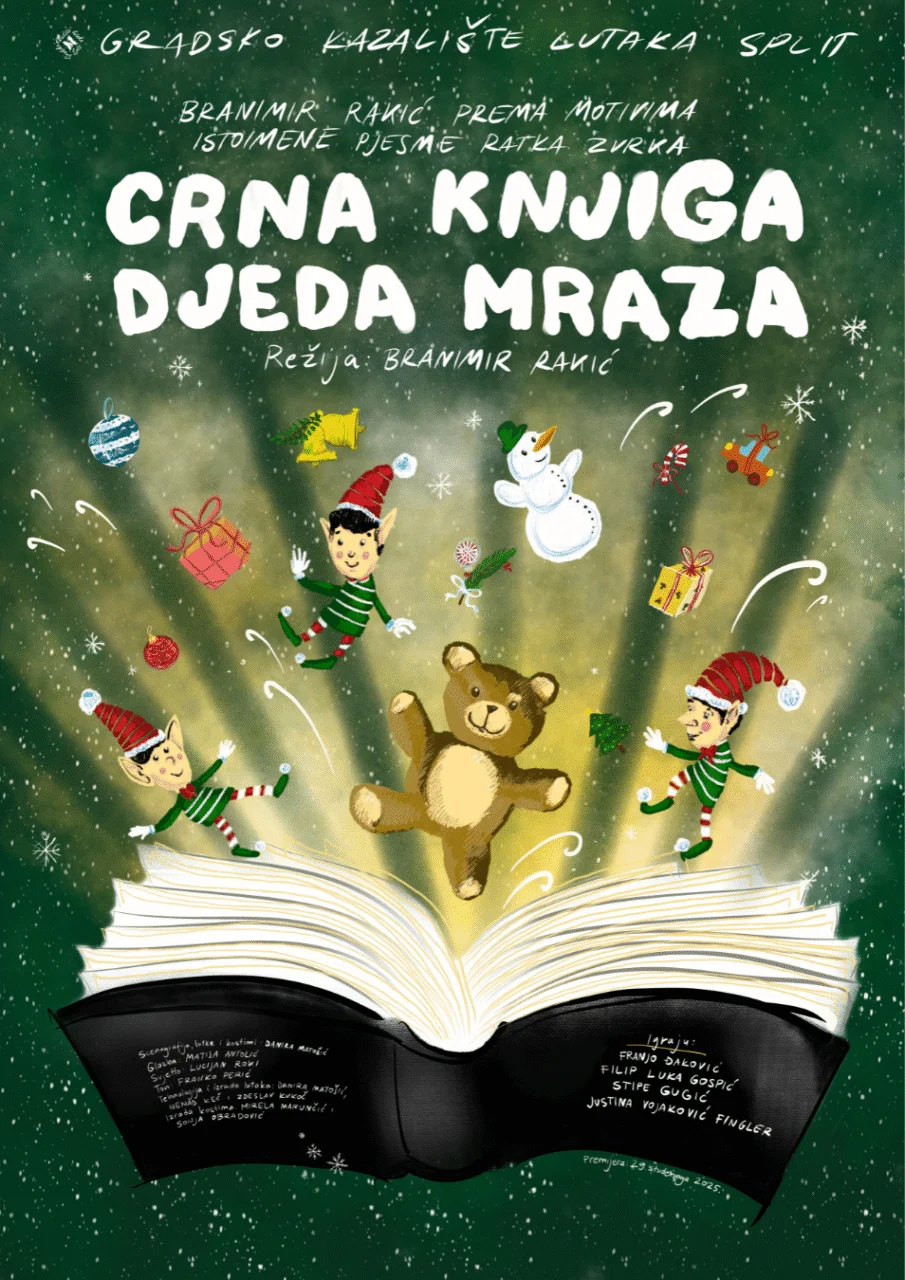 U blagdanskom šarenilu, gdje darovi sjaje jače od pogleda, patuljci iz radionice Djeda Mraza otvaraju jedno posebno poglavlje – priču iz Crne knjige. To nije priča o idealnom Božiću, već o dječaku Zdenku i njegovom medvjediću, izgubljenima u svijetu prepunom stvari, ali praznom od pažnje.